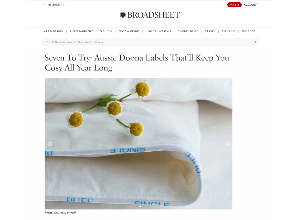 "SNUG LIFE: Puff Life doonas a cuddle with conscience. Packed with 95 per cent duck down that is ethically sourced and fully traceable, they're made for ultimate comfort."